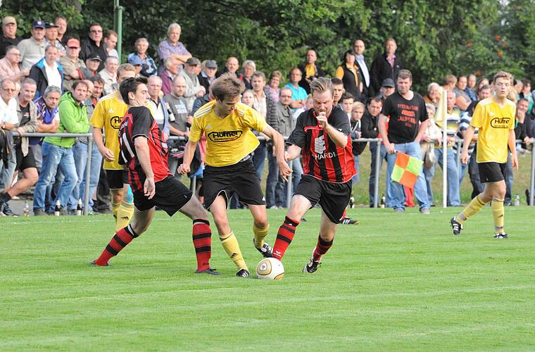 Die Schützlinge von André Betz hatten durch ihren Mittelfeldregisseur Florian Heim die Führung auf dem Fuß (9.), doch vorlegen konnten die FCler durch Michael Schön nach Doppelpass mit Pascal Reininger, der nach der Freistoßflanke von Christoph Hillenbrand um ein Haar per Kopf auf 2:0 gestellt hätte. Danach stand Schiedsrichter David Kern (Röthlein) im Blickpunkt, mit einer Serie von gelben Karten drohte ein Ampelkarten-Festival. Die Gäste erhöhten nach dem Seitenwechsel das Tempo, erspielten sich zunächst aber keine klaren Torchancen. Aus heiterem Himmel schlugen dafür die Platzherren ein zweites Mal zu. Nach einem Diagonalpass überlief Pascal Reininger Christian Happ und lupfte anschließend die Kugel über den herausstürzenden Daniel Neder. Danach rannten die Gelb-Schwarzen an, die binnen Sekunden kurz vor dem Anschlusstreffer standen.