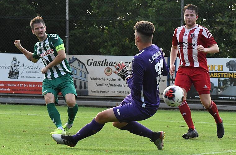 Dabei agierten die Grabfelder vor dem Seitenwechsel elanvoll, über ihren Regisseur Maximilian Weiß setzten sie in der Offensive vielversprechende Akzente. Das gefiel nun dem Fuchsstadter Coach Halbig nicht: "So mancher meiner Spieler zeigte läuferische Defizite." Aus der Überlegenheit der TSVler heraus fiel der erste Treffer. Nach einem Steilpass brach TSV-Kapitän Simon Snaschel durch, umkurvte FC-Keeper Tayrell Kruppa und schob ein. Bei einer ähnlichen Aktion blieb Snaschel nach einer halben Stunde der zweite Treffer versagt, weil Fuchsstadts Stefan Graser die Kugel im letzten Augenblick noch von der Torlinie kratzte.