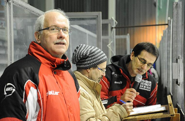 Ohne das Trio im Niemandsland geht nichts bei den Kissinger Wölfen. In der Mini-Zelle unmittelbar vor dem Plexi-Glas müssen Manfred Neckermann, Norbert Hochrein und Günther Matzke schon allein aufgrund der Enge zusammenrücken. Kein Problem - die Drei sind ein eingespieltes Team. Es gilt, den Überblick zu behalten. Und das ist die Kunst, die zwischen Eisfläche und Tribüne Spiel für Spiel abgerufen werden muss. Eishockey ist ein faszinierender Sport. Schnell und körperbetont. Tor- und damit abwechslungsreich.