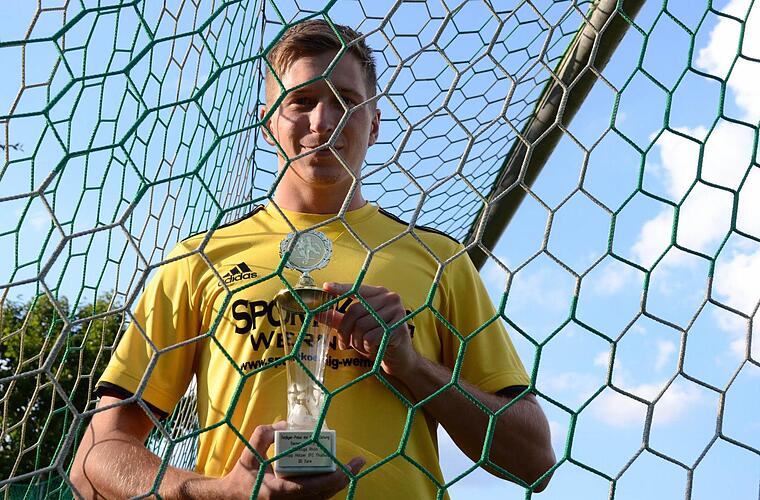 Ist der Torjäger-Pokal Dein erster Pokal als Torschütze? Ist er tatsächlich. Vorher gab es diesbezüglich nur Urkunden für mich.