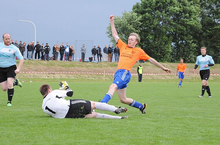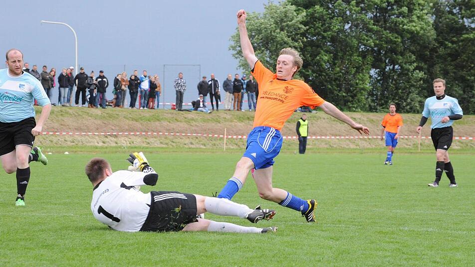 "Uns haben zu viele Spieler und damit die Qualität im Spiel nach vorne gefehlt", betrieb SV-Spielertrainer Oliver Schönwiesner unmittelbar nach Spiel ende Ursachen-Forschung. Und meinte die Ausfälle beispielsweise von Patrick Falkenstein, Mirko Hälbig oder Mike Wirth, die im Saisonverlauf nur unzureichend kompensiert werden konnten. Obwohl angeschlagen, biss Christof Sauer auf die Zähne und versuchte sich als einzige Sturmspitze. Eine gute Idee, weil der SVler vom Anpfiff weg gut im Spiel war, bereits in Minute zwei einen Schuss aus der Distanz zum Besten gab. Das Problem mit der fehlenden Präzision blieb. Erst bei Sascha Graser, als FC-Keeper Jörg Mergenthal einen Schritt eher am Ball war. Dann immer wieder bei Sauer selbst, der vor dem Wechsel gleich mehrere Hochkaräter vergab. Unter anderem nach einem wunderbaren Pass in die Tiefe von Markus Hammerl, als der Heber zu hoch angesetzt war. Einmal rettete Markus Kleinhenz in höchster Not.