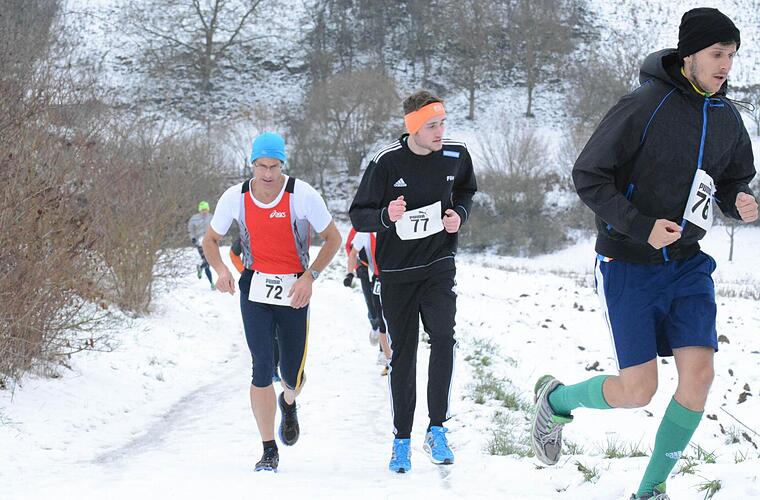 Die Jahreswende in Fuchsstadt hat es schon am frühen Nachmittag in sich. Noch ohne Feuerwerk. Aber mit Raketen. Solchen, die zu Fuß besonders schnell unterwegs sind. Selbst bei schwierigen Streckenverhältnissen im Gelände. Die Mixtur aus Schnee, Eis und aufgeweichter Erde beim Fuschter Silvesterlauf stellte jedenfalls hohe Anforderungen an Kondition und Gleichgewichts-Sinn der Protagonisten. Was auch für den Sieger galt. "Das war echt schwierig. Ich hätte bei normalen Verhältnissen sicher zwei Minuten schneller laufen können", sagt René Amtmann, der am Schlussanstieg den Kohlenberg hinauf Markus Veth von der DJK Neubessingen abschütteln konnte.