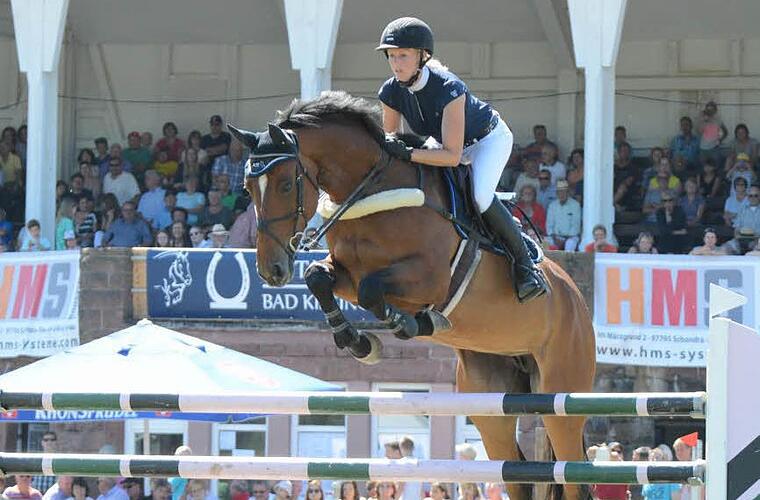 Auch Reitlehrerin Sophia Booms aus Bad Kissingen ging in zahlreichen Wettbewerben an den Start und durfte sich über gute Platzierungen freuen. Im schweren S*-Springen am Samstag erreichte Booms auf Elanja B den elften Platz. Und dieses Springen hatte es durchaus in sich. Parcourschef Hermann Enders hatte auf 570 Metern Bahnlänge zwölf anspruchsvolle Sprünge mit Ochsern, zweifachen Kombinationen, Steilsprüngen und überbautem Wassergraben errichtet, die einige Reiter vor schwer zu lösende Herausforderungen stellte. Zudem wurde die Vorgabezeit vom Richtergremium von 98 auf 85 Sekunden reduziert, was den Druck zusätzlich verstärkte. Da zeigte sich die ganze Klasse und Erfahrung von Heino Möller, der mühelos unter der strengen Zeitvorgabe blieb und bei beiden Durchgängen keinen Fehlerpunkt kassierte. Lohn hierfür waren Platz eins und drei.