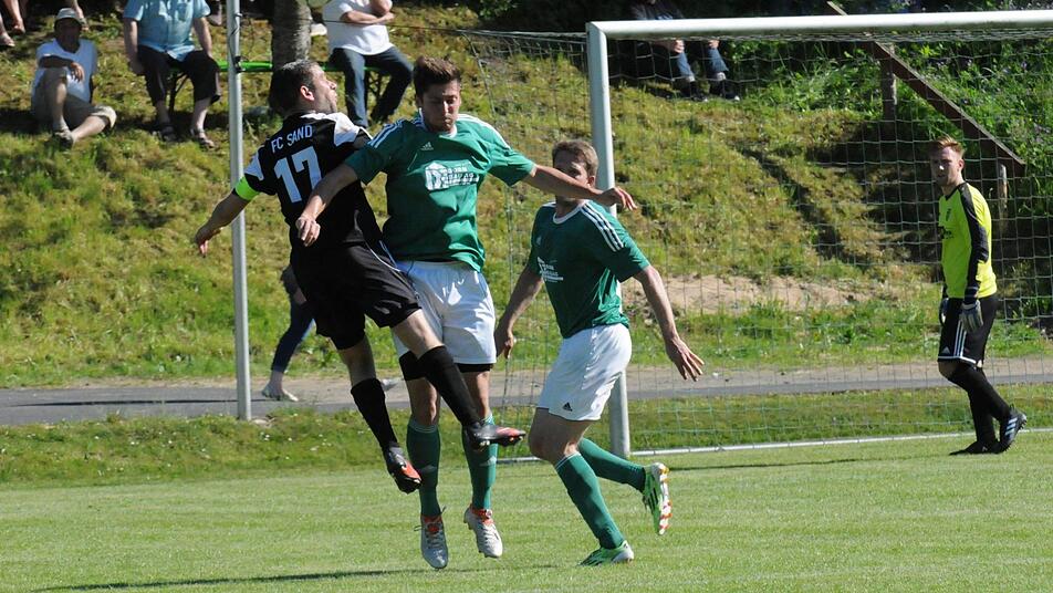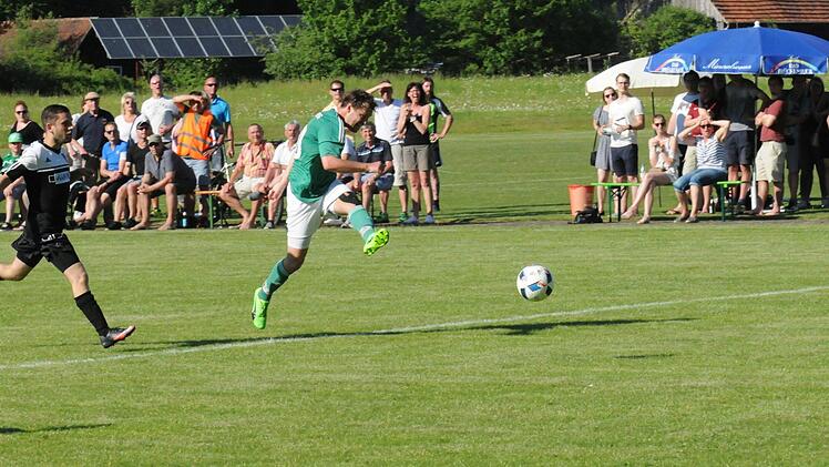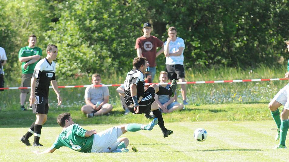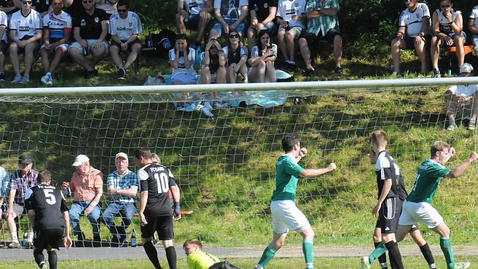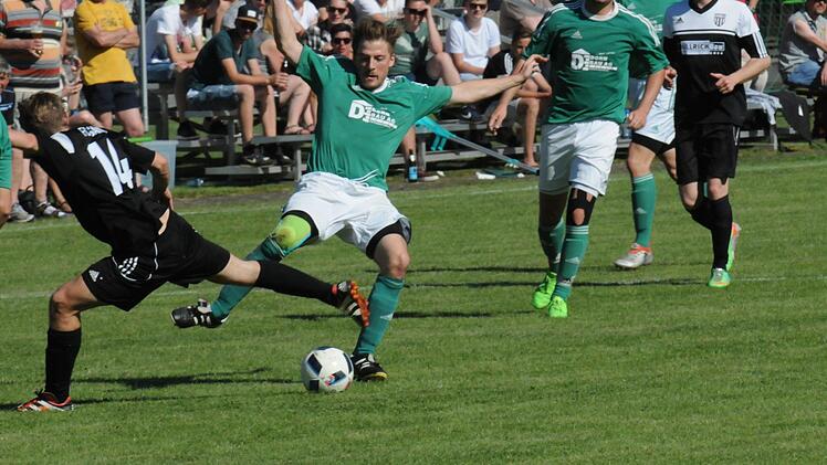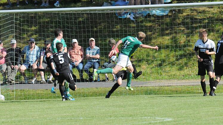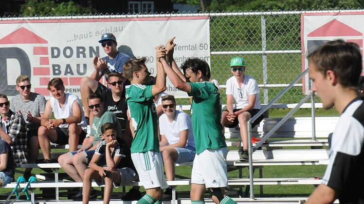 Vor der leicht enttäuschenden Kulisse von 350 Zuschauern setzten sich die Grün-Weißen in einer recht einseitigen Partie deutlich gegen einen insgesamt harmlosen Kreisligisten durch und erreichten so die zweite Runde der Relegation, wo man am kommenden Mittwoch Anpfiff: 18.30 Uhr) zum Landkreisderby beim TSV Rannungen antreten muss. Bei tropischen Temperaturen feierten die Schützlinge von Marius Kubo einen Traumstart. Nach fünf Minuten setzte Mannschaftskapitän Benedikt Carton, nachdem ihm ein abgeblockter Schuss von Philipp Dorn an der Strafraumgrenze vor die Füße gerollt war, das Leder überlegt flach ins Toreck. Die Gäste, die aufgrund des Hinspielergebnisses (2:2) unbedingt Tore zum Weiterkommen erzielen mussten, waren geschockt, antworteten mit einem fahrigen Kombinationsspiel und scheiterten letztlich an der Zweikampfstärke der Bezirksliga-Elf. Diese setzte nach und erarbeitete sich weitere Gelegenheiten. Erst zielte Carton nach Zuspiel von James Galloway etwas zu hoch (21.), fünf Minuten später ließ Gäste-Keeper Fabian Zehe den Schuss von Simon Hergenröder abprallen, zu seinem Glück fand sich kein einschussbereiter SVler.