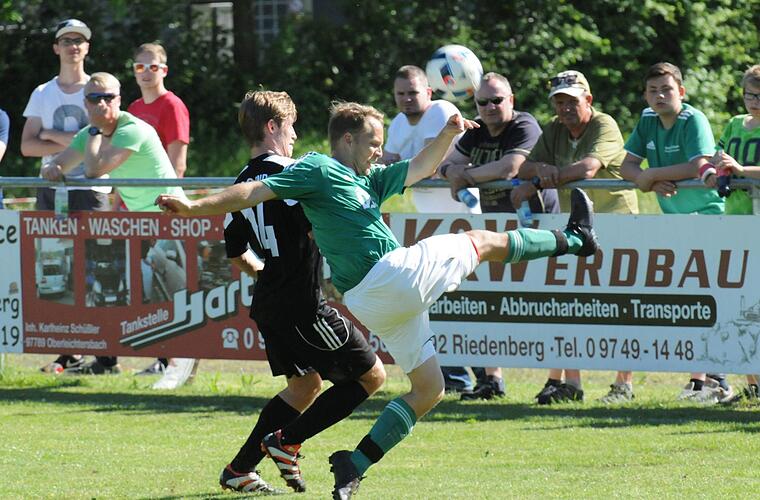 Von den Schützlingen von Christian Michl war vor der Pause kein einzig gefährlicher Angriff zu notieren. "Wie diese Mannschaft in der Saison 106 Treffer erzielte, ist bisher rätselhaft", meinte nicht nur der Fuchsstädter Zuschauer Reinhard Kamm. Zu Beginn des zweiten Durchgangs, in der Schiedsrichter Simon Marx (Großwelzheim) weiterhin keine Mühe mit den Akteuren hatte, brachten die Mainstädter mit Julian Klauer eine frische Kraft, was aber die Durchschlagskraft nicht erhöhte. Die Heimelf blieb weiter am Drücker, der gerade für Dominik Fröhlich eingewechselte Philipp Schäfer verpasste nach Ablage von Philipp Dorn um Zentimeter das Tor. Beim nächsten Angriff setzte Schäfer neuerlich nach Vorarbeit von Galloway zum Torschuss an, diesmal parierte der Goalie in höchster Not. Es folgte ein abgefälschter Galloway-Schuss ans Außennetz, aus dieser Szene heraus entwickelte sich der zweite Treffer. Nach Eckball von Patrick Barthelmes nickte Galloway erstaunlich unbedrängt ein. Kurz nach Wiederanpfiff durfte erstmals, und dann auch schon zum letzten Mal, Riedenbergs Keeper Florian Dorn sein Können zeigen, als er einen Klauer-Flachschuss mit Mühe um den Pfosten drehte.