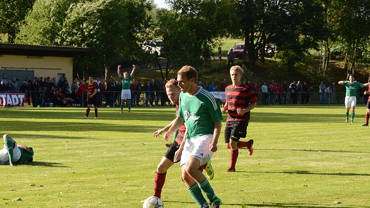 Dann hatte Riedenbergs Torsteher Glück, dass er nach einem Foul außerhalb des Sechzehners nur den gelben Karton gezeigt bekam. Fünf Minuten später schlenzte SG-Spielertrainer Steffen Rögele, dessen Nebenleute in der Deckung einen insgesamt unsicheren Eindruck hinterließen, einen Freistoß aufs Torgebälk. Dessen Elf ging erneut in Führung, als Thomas Götz den SV-Keeper mit einem überlegten Heber überlistete. Kurz vor dem Halbzeitpfiff gelang dem Bezirksligisten vor den 450 Zuschauern in Wülfershausen nicht unverdient der erneute Ausgleich, als nach Barthelmes-Flanke James Galloway, der bereits Mitte der ersten Halbzeit aufgrund seiner Oberschenkelzerrung an der Außenlinie länger behandelt werden musste, die Kugel per Kopf dem eminent lauffreudigen Stefan Wich auf den Fuß legte, der volley einnetzte. Der zweite Durchgang startete mit einem abgefälschten Rögele-Freistoß, den Dorn im Nachfassen parierte. Quasi ein Weckruf für die Rhöner, die jetzt am Drücker waren mit der Dreifach-Chance für Wich, Benedikt Carton und Simon Hergenröder. Anschließend haderte der Kreisligist mit dem Fußballgott, als ein verdeckter Schuss von Martin Steigert vom Pfosten ins Feld zurückflog.