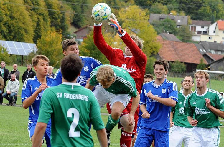 Die Riedenberger überflügelten mit diesem Sieg den Kontrahenten in der Tabelle. "Darüber freue ich mich, aber es ist nur eine Momentaufnahme", bleibt SV-Coach Charly Storch bescheiden. Der sah wie die Anhänger aus beiden Lagern ein interessantes und gutklassiges Match, das einen anderen Verlauf nahm, als es sich die Trainer in ihrer taktischen Überlegung ausgerechnet hatten. "Ich weiß, dass Riedenberg sehr konterstark ist, da wollen wir nicht mit großer Offensive ins offene Messer rennen", erklärte TSV-Coach Dominik Schönhöfer vor dem Anpfiff. Sorgen bereitete ihm die Verletzungsmisere, kurzfristig fiel auch noch Henok Kiros aus. Dass die Grün-Weißen dann in Führung gingen, entsprang einer kuriosen Aktion. Bei einem Schlag kurz vor der Mittellinie traf TSV-Spielführer Hans-Christian Schmitt das Bein von Markus Rüttiger, die Kugel flog Richtung Gäste-Tor.