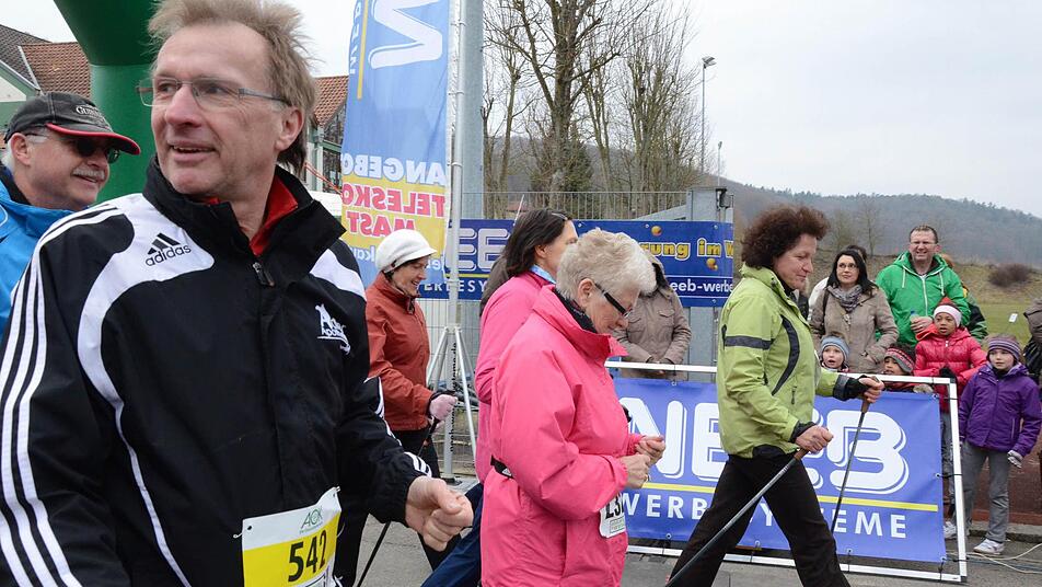 Gute Idee. Und der richtige Service. Ein Teil der Räumlichkeiten im Ramsthaler Sportheim wurde zum Massage-Salon umfunktioniert. Professionelle Hände kneteten müde Beine. Und davon gab es jede Menge nach dem Saaletal-Marathon des SV Ramsthal mit der Königs-Disziplin über 42,195 Kilometer. Gelaufen wurden aber auch Halbmarathon, 10 Kilometer und kürzere Strecken für den Nachwuchs. Ein Kraftakt nicht allein aufgrund der Kilometer-Fresserei. Temperaturen nahe dem Gefrierpunkt und vor allem der böige Wind setzten den Athleten zu. Auch dem schnellsten Marathon-Läufer, der der Konkurrenz weit enteilt war. Drei Stunden und acht Minuten betrug die Siegerzeit von Sebastian Apfelbacher (TG Kitzingen), der im Vorjahr an gleicher Stelle Sechster war. "Die Tempowechsel waren hart. Das gibt Muskelkater", sagte der 34-Jährige nach seinem 27. Marathon. Die Bestzeit des Weinbau-Ingenieurs steht bei 2:44 Stunden.