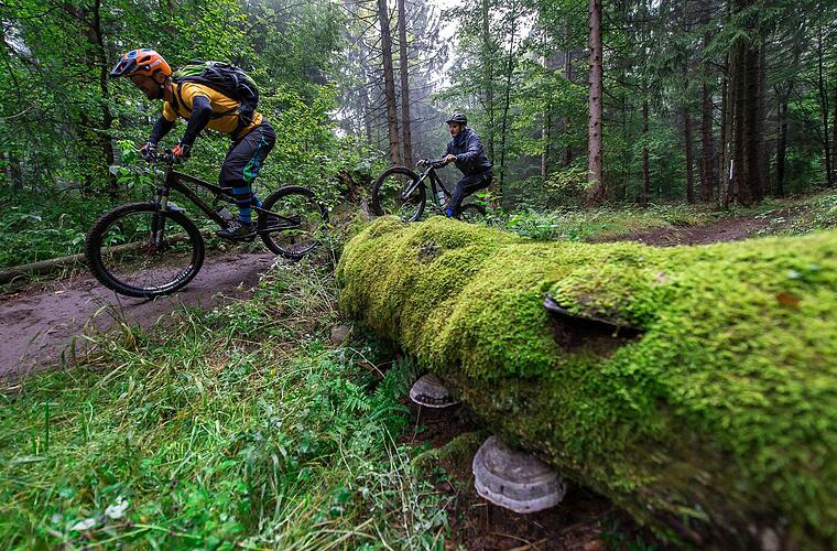 Ein Flowtrail-Selbstversuch: Simon Snaschel, eigentlich Fußballer, hat am Kreuzberg Mountainbike-Erfahrung geschnuppert.