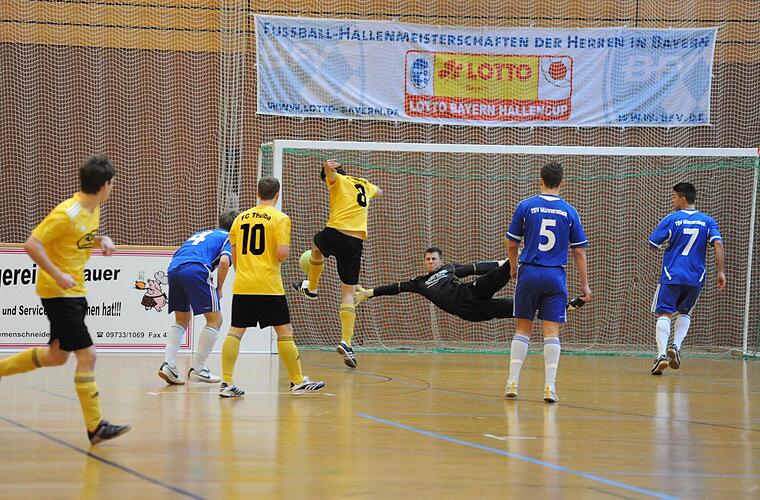 Die Landkreisvereine TSV Münnerstadt, FC Thulba und SV Obererthal landeten im geschlagenen Feld und dürfen sich ab sofort auf die Freiluftrunde vorbereiten. In der proppenvollen Sporthalle "haben wir ein anständiges Turnier gesehen", resümierte Kreisspielleiter Michael Ritter, der auch die Siegerehrung vornahm. Von der Fairness her gab es diesmal keine Klagen zu hören. Die Sprunggelenksverletzung des Obererthalers Fabian Böhm beruhte laut Abteilungsleiter Manfred Rüth auf ein unglückliches Umknicken. Die Rot-Weißen hatten diesmal auf einige Hallenspezialisten wie die Brust-Brüder verzichten müssen, waren daher weitgehend chancenlos. In der Vorrunde feierten die Obererthaler, bei denen der junge Michael Helm im Tor stand und der etatmäßige Keeper und Spielertrainer Michael Leiber in der Offensive agierte, lediglich ein Erfolgserlebnis: Gegen den Kreisklassisten DJK Eichenhausen teilte man sich beim 2:2 die Punkte.