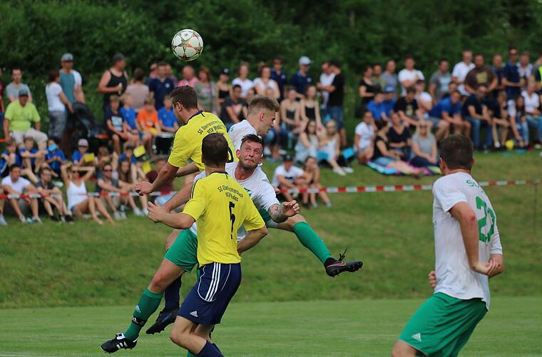 Aber am Ball war dann doch meistens die völlig unerschrockene SGO. Und die Gelb-Blauen probierten es immer wieder mutig aus allen Lagen. Simon Wittmann setzte das Leder nach sechs Minuten an den Pfosten, später schaufelte er das runde Spielgerät direkt auf die Querlatte. René Lormehs prüfte unter anderem die Haltbarkeit des Obereschenbacher Außennetzes, Florian Friebel, Yannik Enders und Joschka Eberlein verfehlten den Kasten meistens nur um wenige Zentimeter und Jakob Leitsch hatte mit einem stark abgefälschten Schuss einfach nur großes Pech, dass der Ball partout nicht in die Maschen fallen wollte.