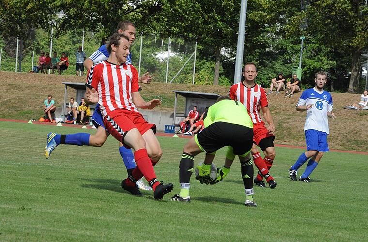 Nur zwei Tage nach dem Pokalspiel gegen die Würzburger Kickers unterlagen die Teutonen unglücklich beim Aufsteiger. "Unser Sieg ist zwar verdient", räumte der Hausener Pressereferent Harald Markert ein, "aber es gab insgesamt auf beiden Seiten so viele weitere Torchancen, dass eigentlich jedes Ergebnis möglich gewesen wäre." Mit einem Doppelschlag zum 2:0 legte Hausen furios los. Wieder ins Spiel zurück kamen die Teutonen, als Jannik Schäfer den Anschlusstreffer markierte. Und dem FC gelang sogar der Ausgleich durch Claus Kirchner nach einem Fehler im TSV-Spielaufbau. Aber Julian Hautzinger verwandelte einen Freistoß direkt ins kurze Eck zum 3:2-Halbzeitstand. Und wieder hätte der FC ausgleichen können, doch der TSV-Keeper Xaver Trabert holte einen Freistoß von Christoph Hillenbrand aus dem Winkel (52.). Nach einem Konter zogen die Hausherren auf 4:2 davon. Julian Hergenröthers Schlenzer zum 3:4 machte es einmal spannend.