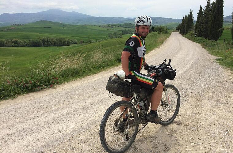 Die Bayernrundfahrt hatte unlängst viele Radsport-Profis wie den aktuellen deutschen Heroen John Degenkolb auch ins Unterfränkische gebracht. Professionell betreut mit großer Entourage. Beim Kampf um Sekunden kommt es schließlich aufs Detail an. Walter Lauter kommt es dagegen auf die Verbundenheit mit der Natur an. "Unsupported Bicycle Adventure" - so nennt sich die Wettkampfform, die dem Bad Kissinger das Gefühl von Freiheit auf zwei Rädern garantiert. Das Rad-Abenteuer ohne Unterstützung von außen führte Walter Lauter nach Italien, zum Tuscany (= Toskana) Trail mit Start in der Bad Kissinger Partnerstadt Massa. Mit der ersten Radumdrehung lief die Zeit.