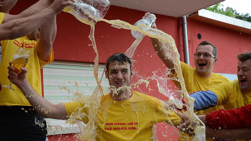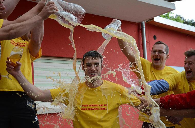 am Saalestrand.Fuchsstädter Buam halten auch zusammen. "Bei uns wird der Fußball noch gelebt. Die Leute setzen sich für den FC ein", lobt Dominik Vierheilig und schickt ein dickes Dankeschön an alle Vereinsmitglieder hinterher, die den FCF am Leben halten. Der Kapitän feierte seine erste Meisterschaft überhaupt, was auch für Uwe Eichel gilt. Der 43-Jährige sprang in die Bresche, als sich Stammkeeper Andreas Appel verletzte.
