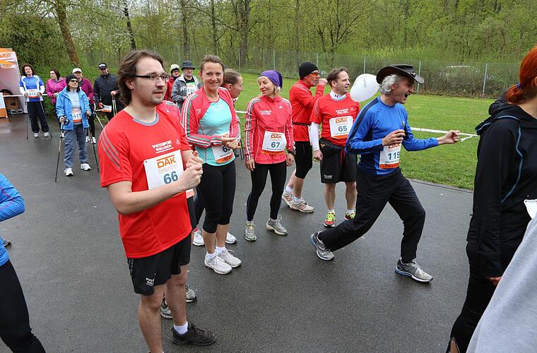 Trotz empfindlich kühler Temperaturen hatten sich wie im Vorjahr über 300 Sportler angemeldet für diese Veranstaltung, die eingebettet war in die Bad Kissinger Gesundheitstage und unter dem Motto "Dem Krebs davon laufen" stand. Aufgrund des angekündigten Regens hatten die fleißigen Organisatoren kurzerhand die abgetaute Eishalle zum großen Gruppenraum umfunktioniert. Turnhallen-Atmosphäre inklusive, weil sich die etwa 200 Kinder, die ohne Anmeldegebühr teilnehmen durften, gemeinsam in der Halle aufwärmten, ehe es ins kühle Freie ging. Schnellster im Hauptlauf über exakt 8870 Meter war Michael Wetteskind (DJK Schweinfurt) in der Zeit von 30:23 Minuten vor Andreas Grau (DAV Bad Kissingen/30:25) und Matthias Orth (Elektro Orth/31:34). Schnellste Frau war Katharina Eberlin (VR-Bank/40:03) vor Manuela Greier (TSV Hollstadt/40:54) und Anke Herrmann (ohne Verein/42:09). Die Nordic-Walker legten 6624 Meter zurück, der Schülerlauf ging über 2124 Meter.