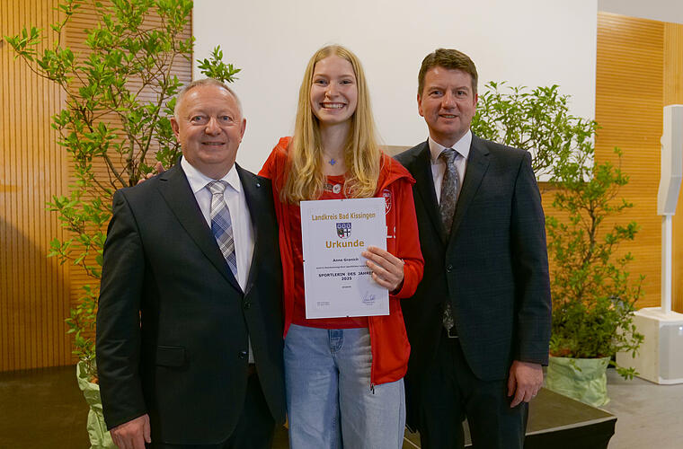 Verliehen wurden auch die Sport-Ehrenbriefe für Persönlichkeiten aus dem Landkreis, die sich ehrenamtlich und uneigennützig in den Dienst des Sports gestellt und die große Sportfamilie zusammengehalten haben. Die Ehrungen gingen an Christian Häfner vom DJK SV Premich, an Sabine Hofstätter vom TV/DJK Hammelburg. Weiterhin an Frank Mersdorf vom TSV Oberthulba, an Ulrike Röder vom Schützenverein Edelweiß Reiterswiesen und an Petra Schlereth vom TSV Waldfenster. Für ihre besonders herausragenden Leistungen wurden außerdem Anne Granich und Bernhard Kreps als Sportlerin und Sportler des Jahres ausgezeichnet. Anne Granich vom TSV Oberthulba ist erfolgreich im Bereich Leichtathletik – Hochsprung. Sie hat Platzierungen bei verschiedenen Meisterschaften und internationalen Wettbewerben geholt, darunter den ersten Platz bei den Bayerischen Meisterschaften 2025. Bernhard Kreps von der Königl. Priv. Schützengesellschaft Hammelburg hat bei der Weltmeisterschaft im Feldarmbrustschießen in Ungarn den 1. Platz mit der Mannschaft und den 11. Platz in der Einzelwertung erringen können. Neben Landrat Thomas Bold nahmen auch die stellvertretende Bürgermeisterin der Gemeinde Burkardroth, Silvia Metz sowie der stellvertretende BLSV-Kreisvorsitzende Edwin Metzler an der Verleihung teil. Für ein abwechslungsreiches Programm sorgte die Tanzgruppe "Mini Dance Sensation" des TSV Wollbach sowie die "Dancing Frogs" der DJK-SV Premich und die Combo "Father & Sons". Bold dankte auch dem Vorsitzenden des TSV Wollbach für die Bereitstellung der Räumlichkeiten sowie den Helferinnen und Helfern, die sich um das leibliche Wohl der geladenen Gäste kümmerten. Außerdem ging sein Dank an die Mitarbeitenden der Kommunalen Jugendarbeit für die Organisation und Vorbereitung des Sportempfangs.