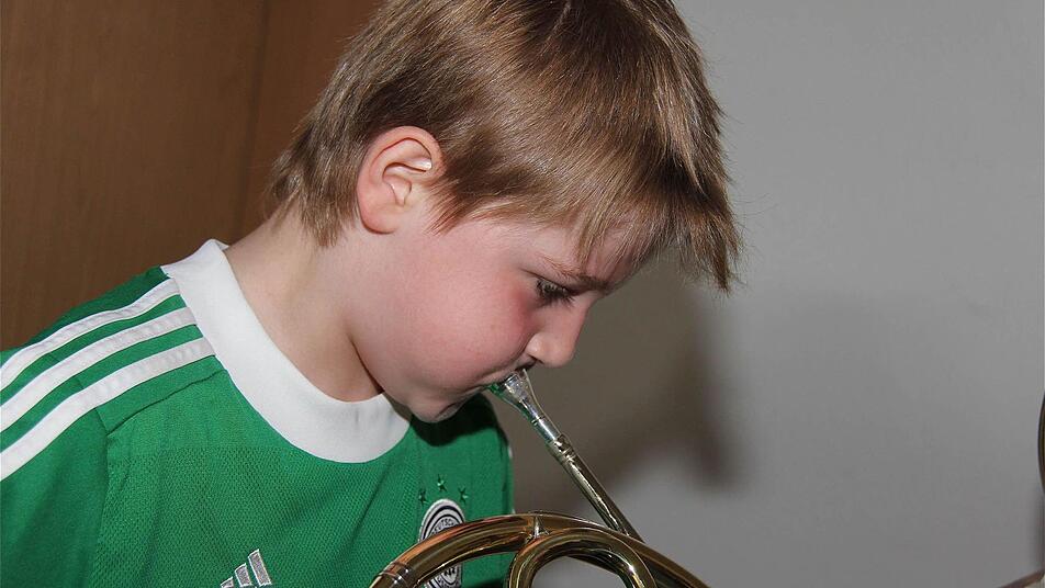 Instrument entlockt hat. Benjamin (9) hat am Waldhorn ebenfalls ein musikalisches Erfolgserlebnis.