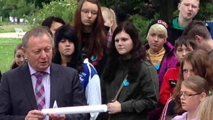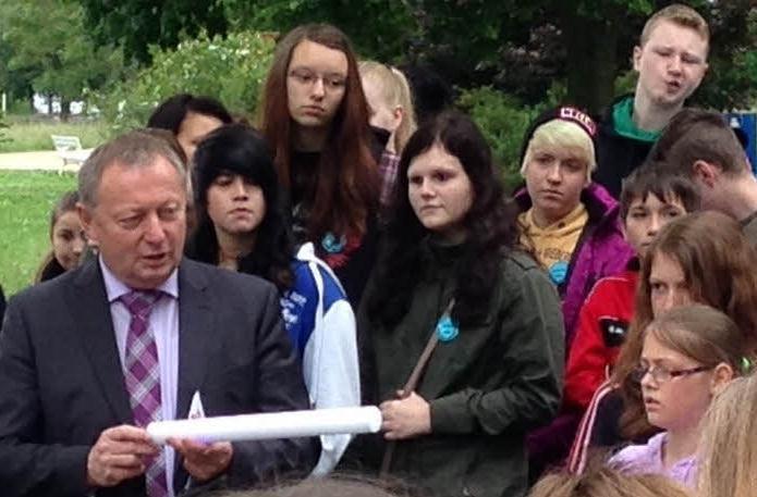 Landrat Thomas Bold begrüßte die Kinder : "Dass so viele Kinder aus der Schule und den Kindergärten mitlaufen und noch Paten zum Laufen motivieren, ist nicht nur im Hinblick auf die Gesundheit eine tolle