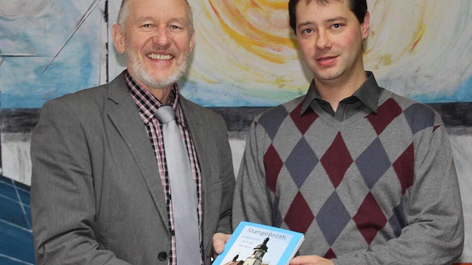 Bürgermeister Waldemar Bug (ödp) ist der erste, dem André Keßler als Vorsitzender des Stangenrother Vereinsrings die neue Chronik Stangenroths überreicht: Stangenroth, ein Rückblick über die Zeit seit den 70er Jahren. "Ich finde es immer wieder wichtig, dass in dieser so schnelllebigen Zeit historische Ereignisse gesammelt werden", sagte Bug.