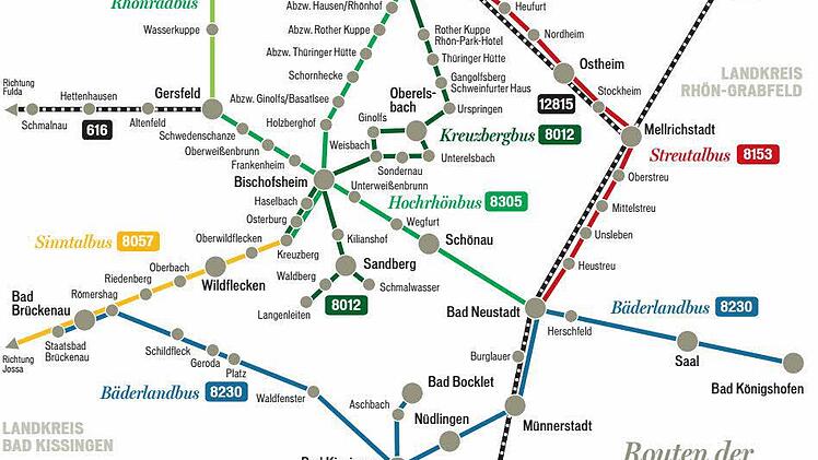 "Die Freizeitbus- Linien sind eine sehr gute Einrichtung für Gäste und Bewohner des Landkreises", lobt Landrat Thomas Bold (CSU) das Angebot der beiden Landkreise. Ähnlich wie beim Hochrhöner-Wanderweg und den Extratouren darum herum sei der Bäderlandbus die Hauptstrecke: "Damit werden die fünf Kurorte des Bäderlandes Bayerische Rhön verbunden." Die fünf weiteren Linien entlang von Saale, Sinn und Streu sowie über die Hohe Rhön und auf den Kreuzberg seien gute Ergänzungen und haben Anschlüsse an den Bäderlandbus, an die Bahn und nach Fulda.