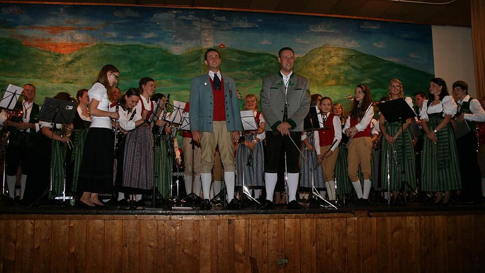 Krönender Abschluss des Konzertes war der gemeinsame Auftritt der grünen und roten Trachten. Bernd Borst (Steinach) und Volker Metz (Stangenroth) dirigierten abwechselnd den Deutschmeister-Regimentsmarsch und das Stück "Wir Musikanten". Zugabe waren das Frankenlied und Böhmischer Traum. Die Fans hoffen, dass ein solches Gemeinschaftskonzert wiederholt wird.