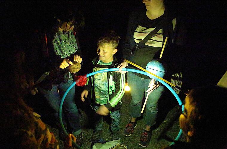 Wenn ein blauer Hula-Hoop-Reifen zur Umlaufbahn der Erde wird, ist Sabine Frank dabei, Wissenschaft so zu erklären, dass sie begreifbar wird. In der Mitte des Reifens baumelt eine Laternenleuchte: die Sonne. Mit einer Kokosnuss verkörpert die Chefin des Sternenparks Rhön einen Kometen. Sie lässt die Nuss von oben in Richtung Reifen brausen, der Komet kreuzt die Erdbahn. Was von der Begegnung bleibt, ist das, was jetzt in den Nächten im August viele "Ahs" und "Ohs" entfesselt und zahllose Wünsche in den Himmel schickt.