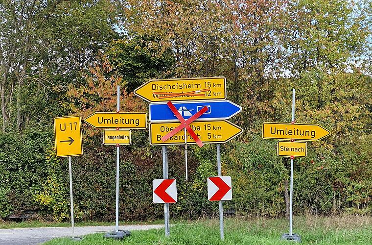 Stangenroth Im Moment scheint nur noch der Weg nach Bischofsheim frei zu sein - zumindest, wenn man als Verkehrsteilnehmer an der Einfach nach Gefäll steht. Weder durch Stangenroth noch in Langenleiten können die Straßen genutzt werden. Doch beide Baustellen näheren sich einem Ende.