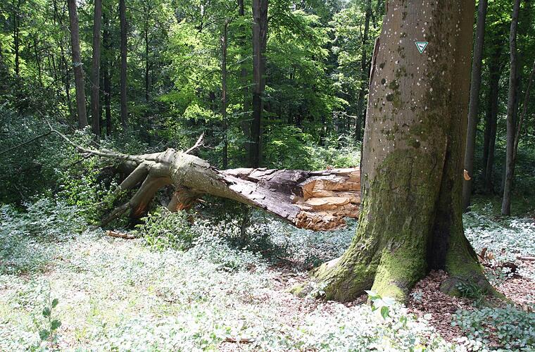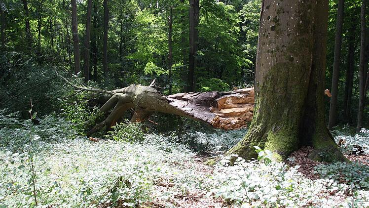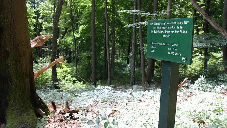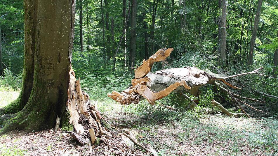 Hunderte Sulzthaler haben 1997 dafür unterschrieben und Geld gesammelt, dass die Dicke Buche auf dem Weg von der Forstabteilung Waldfestbuche hinunter ins Schnepfenthal nicht gefällt wird. Was damals von Menschenhand verhindert wurde, hat jetzt der Sturm verursacht.