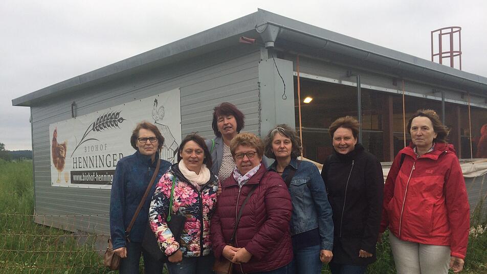 Die jährlich stattfindende Sommertagung der Ortsbäuerinnen im Bayerischen Bauernverband Bad Kissingen führte die rund achtzig Frauen in diesem Jahr zunächst nach Detter wo die Besichtigung des Naturlandhofes Henninger auf dem Programm stand. Hier konnte ein selbstgebautes Hühnerhaus besichtigt werden, in dem bis zu 800 Hühner Platz finden.
