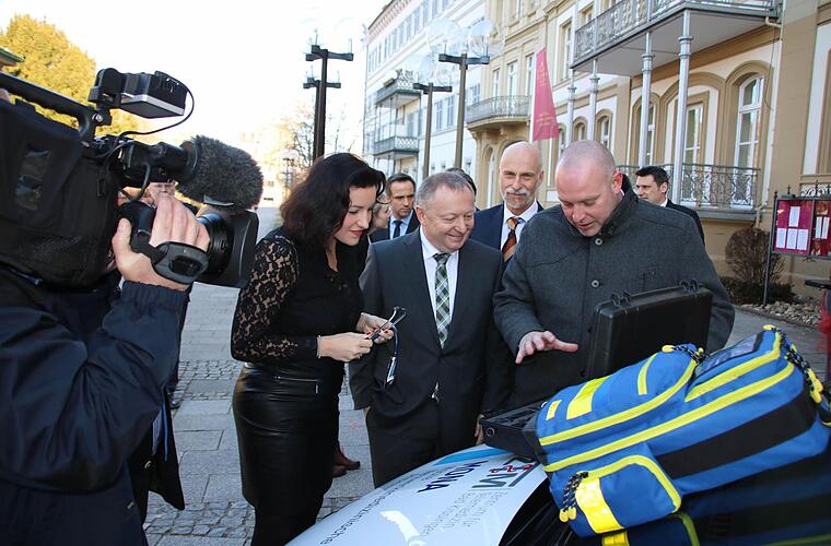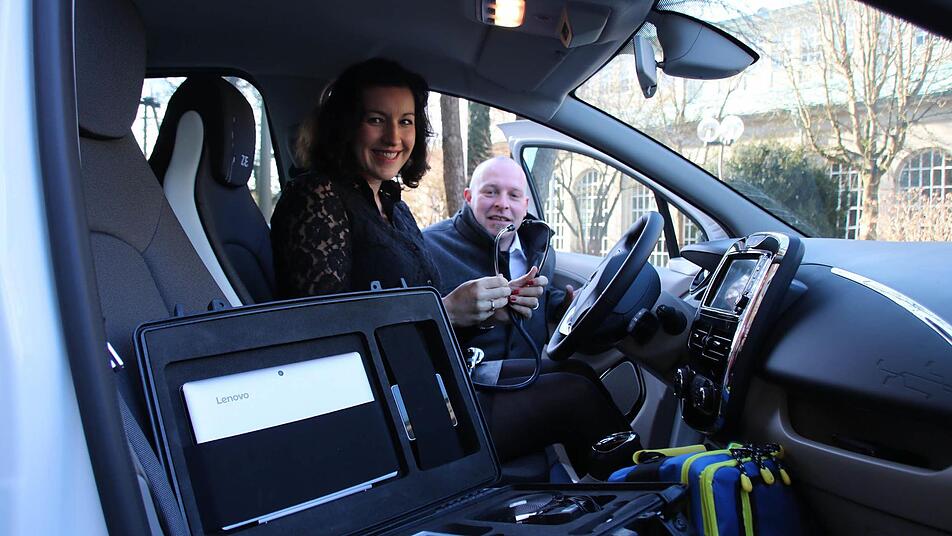 Die Aufschrift "Gefördert durch: Bundesministerium für Verkehr und digitale Infrastruktur" ziert das nagelneue E-Mobil des Zentrums für Telemedizin (ZTM). Unterwegs sein wird damit bald eine mobile telemedizinische Assistentin, kurz "Mona". "Wir wollen das in einigen Wochen auf die Straße bringen", sagt ZTM-Geschäftsführer Sebastian Dresbach über den Projekt-Stand. Mit Kamera, einem Stethoskop, das Töne online übertragen kann, und vielen weiteren Geräten soll dann eine medizinische Fachkraft durch die Landkreise