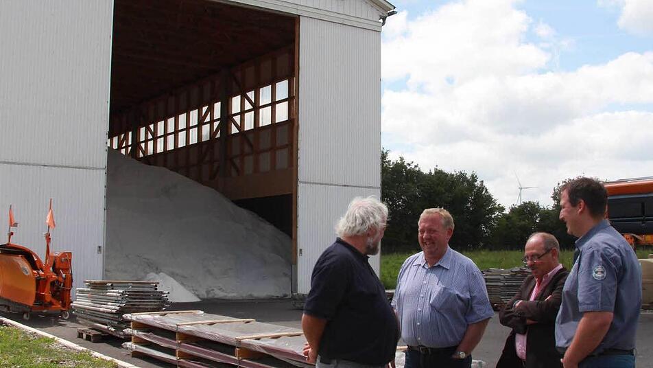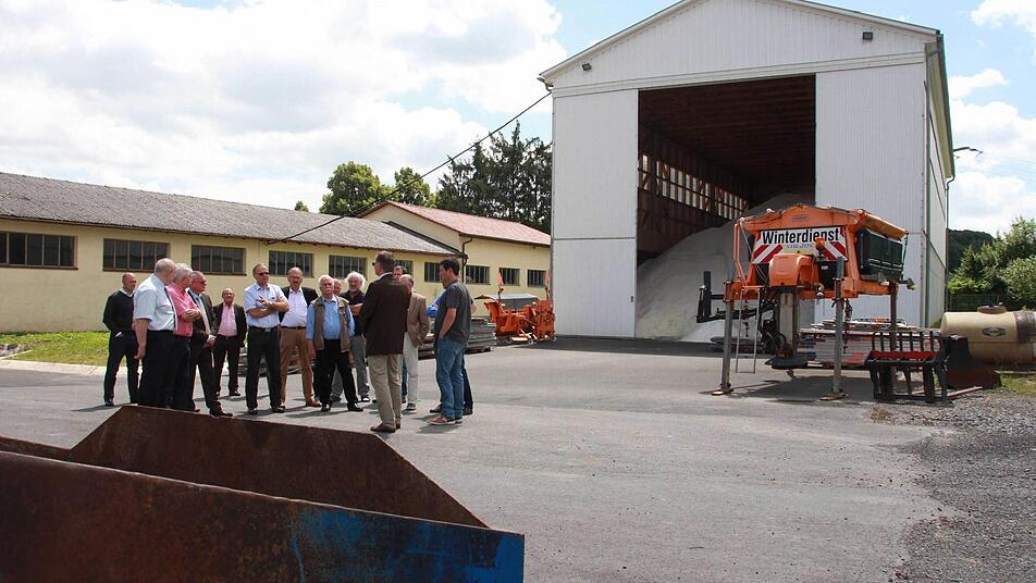 In der Halle mit dem hohen Eingang türmt sich ein mächtiger Salz-Berg. Seine Bestimmung ist um diese Zeit noch fern, doch der Landkreis ist gerüstet. So wie seine Straßenmeisterei. Teile der Anlage in Oerlenbach wurden saniert und erneuert. Was sich am Kreis-Bauhof getan hat, schauten sich die Mitglieder des Wirtschafts- und Umweltausschusses des Landkreises genauer an.