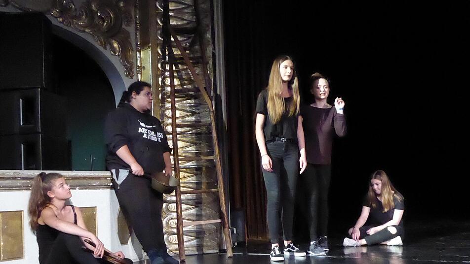 Regisseurin Luise Kautz vom Würzburger Theater übernahm die Schüler von Dagmar Fischer und Ulrike Weilbach, die durch Arbeit an Text und dramatischer Gestaltung in ihren Schulen vorbereitet worden waren, und führte die Endregie auf der Bühne des Kurtheaters. Von ihr hätte man sich vielleicht wünschen können, dass sie die lange Ouvertüre gerade für die Kleinen im Zuschauerraum mit Tanz oder Pantomime gefüllt und so auch das Sehbedürfnis aller befriedigt hätte. Dabei zur Seite gestanden hätte ihr sicher Michaela Weißenberger. Sie hatte mit vielen eigenständigen Ideen und unter Einbeziehung der Wünsche ihrer jungen Sänger und Tänzer eine umfangreiche Choreographie für die präzise und konzentriert präsentierten Volks- und Rüpelszenen erarbeitet und war daneben auch als Chorleiterin und Korrepetitorin am Klavier eine wichtige Stütze für die Gesamtleiterin des Projekts, Lea Fink.