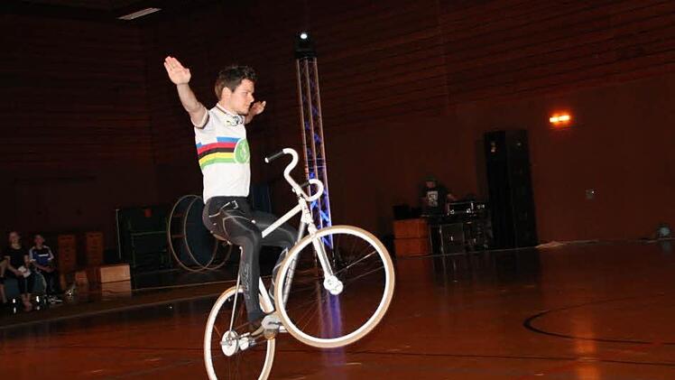 Und sie staunten; Sportarten wie rhyhthmische Sportgymnastik, Kunstradfahren oder Hip-Hop live und nicht vor dem Fernsehen zu betrachten, ist ein himmelweiter Unterschied. So begeisterten die Mädchen des Bundesleistungszentrums für Sportgymnastik in Fellbach mit Grazie, Perfektion und Ausdrucksstärke. David Schnabel, mehrfache Weltmeister im Kunstradfahren, zeige sein Können sympathisch und volksnah.