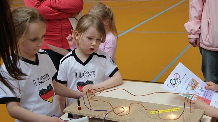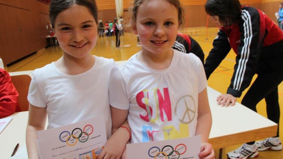 Wie viele Teilnehmer sich ihre olympische Urkunde holten, konnte Katja Planer schwer abschätzen, denn in der Halle herrschte ein Kommen und Gehen. Erstmals mussten die kleinen Olympioniken nicht angemeldet werden, sondern konnten einfach spontan mitmachen. Trotzdem hätte sich Katja Planer gerne noch ein paar mehr Kinder bei diesen olympischen Spielen gewünscht. Anna und Sabrina waren aus Poppenlauer zu den Kinderspielen angereist. Den beiden Mädchen hat es gefallen. Sie hatten besonders viel Spaß am Slalomparcour mit Wischmops.