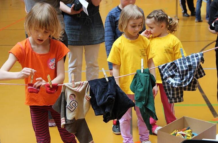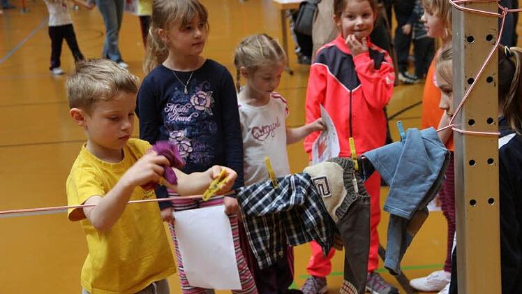 Am Festtag richtete der TSV auch die Kinder-und Jugendolympiade des Turngau Rhön-Saale aus. Seit zwei Jahren gibt es diese Veranstaltung, erläuterte Katja Planer vom Turngau. "Sie ermöglicht den Kindern verschiedene Bewegungsformen", erklärt die Sportlehrerin weiter. An verschiedenen Stationen konnten die Jungen und Mädchen ihre motorische Geschicklichkeit testen. Dabei ging es nicht unbedingt um turnerisches Können und schon gar nicht um Höchstleistungen. Der Spaß stand im Vordergrund. Auch Wäscheaufhängen stand auf dem Programm. "Das klappt aber noch nicht so richtig", bedauerte ein Mutter dazu.