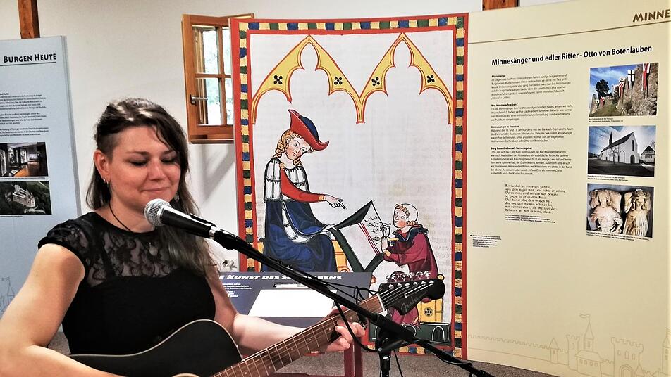 "Zahlreiche Expertinnen und Experten aus ganz Unterfranken haben an der Konzeption der Ausstellung mitgewirkt", betonte Bezirkstagspräsident Erwin Dotzel zur offiziellen Eröffnung, die von Gitarristin und "Minnesängerin" Nele Anders aus Hildburghausen mit mittelalterlichen Liedern, darunter "Unter der Linden" von Walther von der Vogelweide, passend zum Thema aufgelockert wurde.