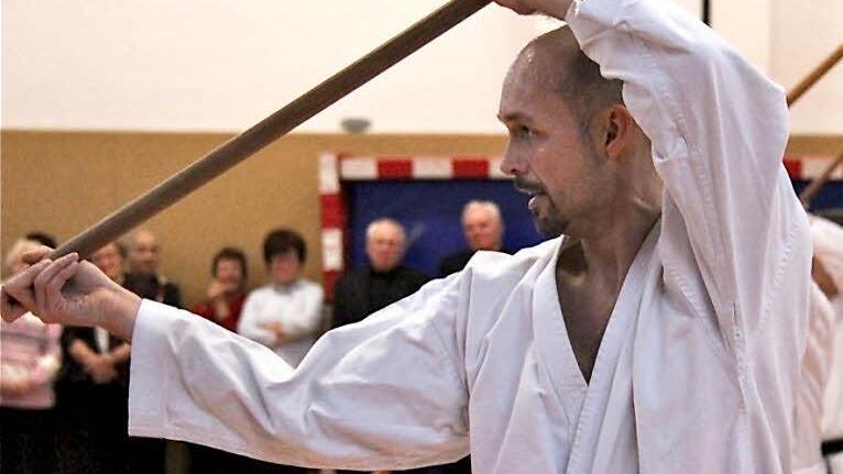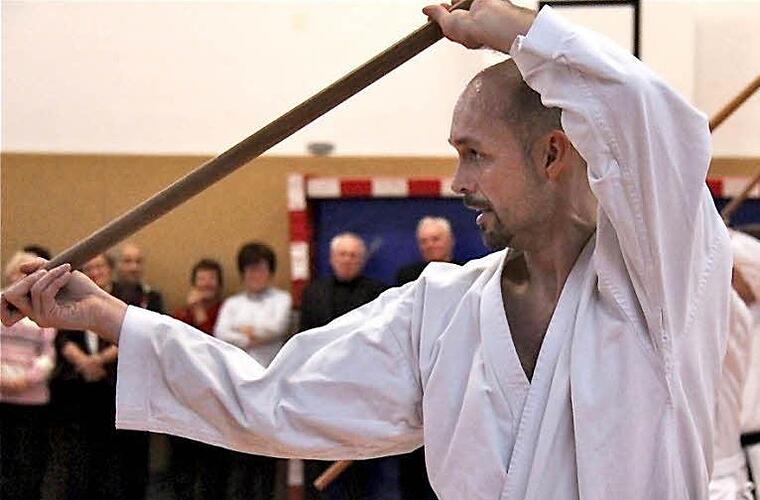 Die Karate- und Kobudo-Kampfsportgruppe mit dem Abteilungsleiter Joachim Pabst an der Spitze zeigte in der Turnhalle Vorführungen. Unterstützt wurde Pabst von Reinhard Galbas, Maria Volkert sowie Birgit und Stefan Giesel. "Man ist im Alltag belastungsfähiger und hat mehr Fitness", erklärte Pabst die positive Wirkung der Sportart.
