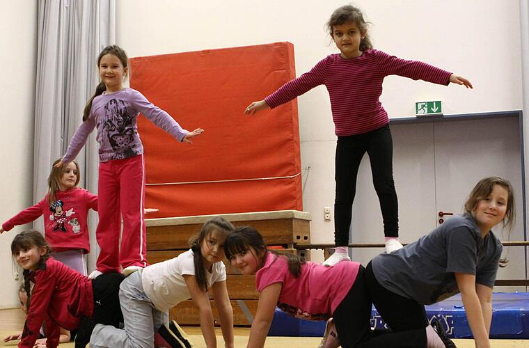 Selbst die Kinder ab drei Jahre sind mit Feuereifer dabei und vergessen fast das Ende ihrer Turnstunde. Denn auch ihre Vorführung soll "sitzen". "Hoffentlich klappt das bis zum Auftritt noch", sagte die etwas skeptische Co-Trainerin Ruth Wildenauer bei einer Probe der Kleinsten des Donnertagsturnens von Elisabeth Rubi.