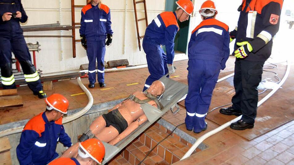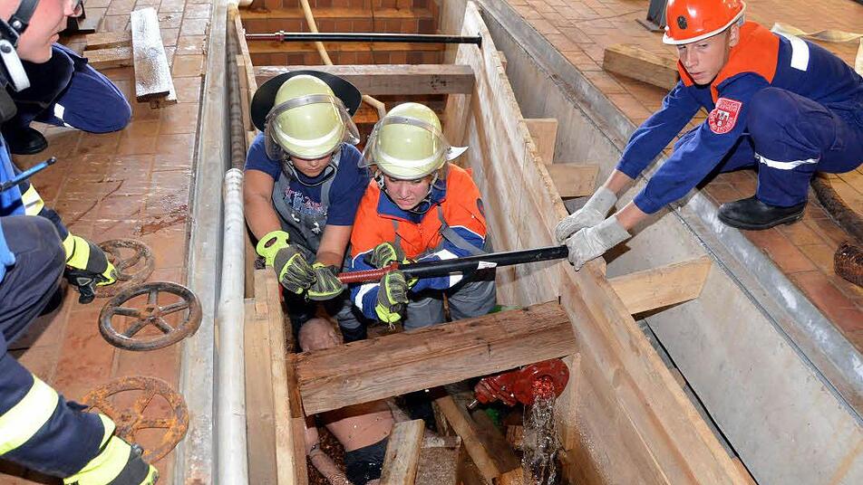 Dummerweise liegt der 200 Meter von der Brandstelle entfernt. Oder beim Tiefbauunfall: Da ist genügend Wasser da, eigentlich sogar zuviel, denn ein eingeklemmter Arbeiter in einer Grube droht zu ertrinken. So muss nach Absicherung der Grubenwände die eine Hälfte der Gruppe den Schein-Verletzten befreien und bergen, die andere Gruppe versuchen das Wasser mit der mitgeführten Kellersaugpumpe aus dem Schacht zu bekommen, oder soll man doch erst versuchen, den Wassereinbruch zu