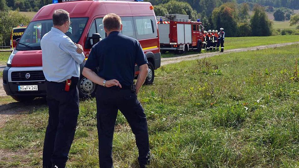 "In dem Fall hätte ein Eimer Wasser voll genügt, das ist schneller und man kann sich dann auch früher um die Bergung des eingeklemmten Fahrers kümmern", erklärt der Gruppenführer der Kissinger Wehr, der diese Station betreut.