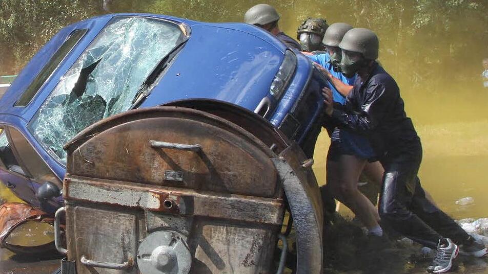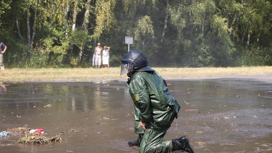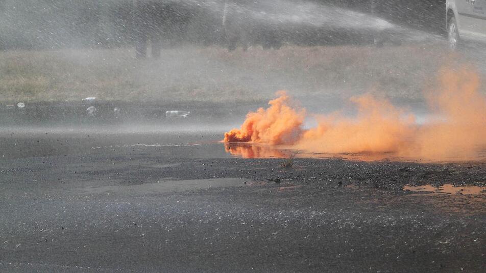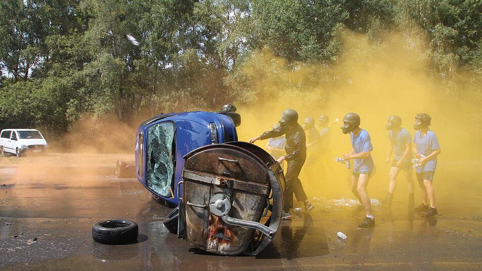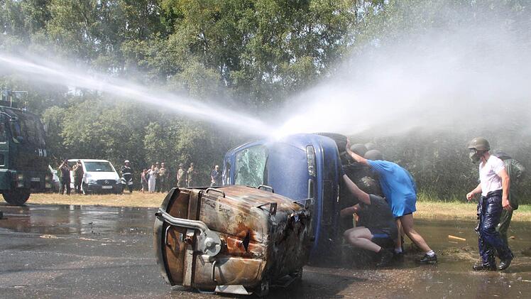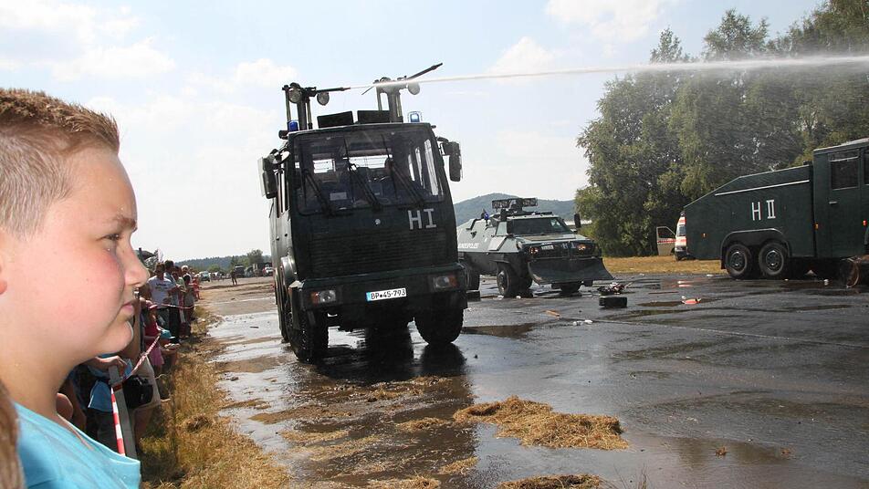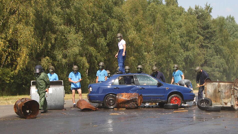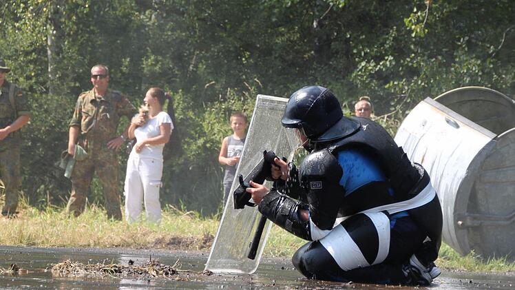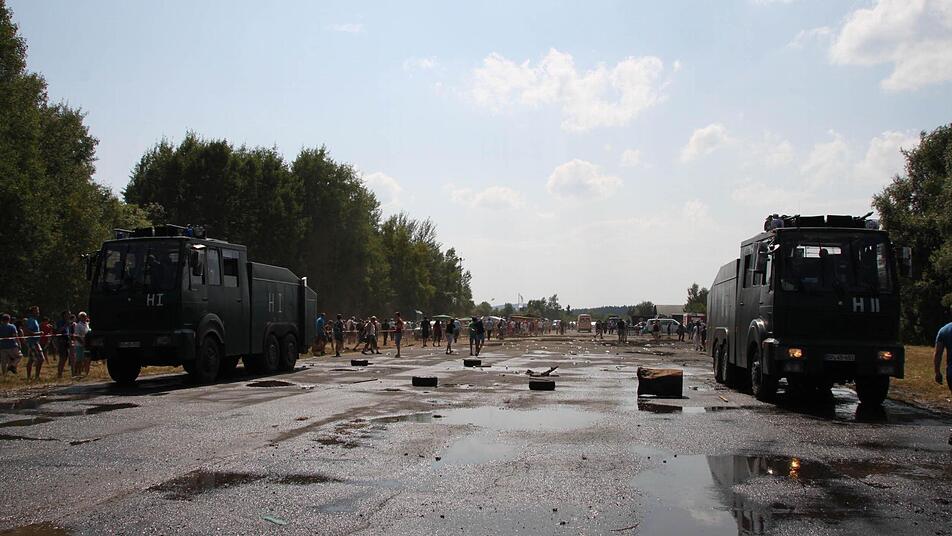 Die Bundespolizei gab eine Vorführung auf dem Truppenübungsplatz Wildflecken. Wer das Spektakel selbst erleben möchte: Heute um 15 Uhr verbarrikadieren sich die Demonstranten noch einmal auf dem Rollfeld.