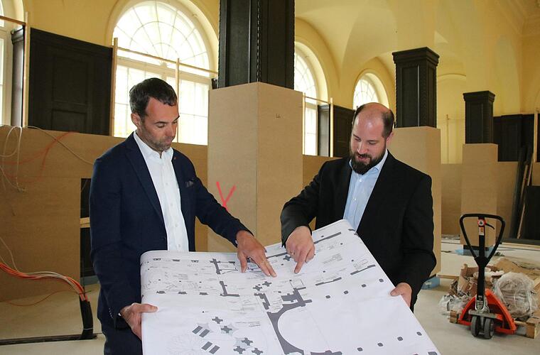 Alles in allem kosten die ungeplanten Arbeiten zusätzliche 250 000 Euro. "Wir sind natürlich froh, dass der Freistaat das Geld in die Hand nimmt", betont Timo Tully. Und Architekt Breunig ergänzt: "Es würde kein Mensch verstehen, wenn wir in drei Jahren wieder anfangen." Auch wenn von der neuen Tourist-Info noch nichts zu sehen ist, laufen die eigentlich geplanten Arbeiten im Hintergrund: "Das ist alles entweder in der Fertigung oder schon fertig", sagt Breunig. Herzstück ist dabei die mehr als 20 Meter lange geschwungene Theke, die nach Fertigstellung der Räume im Mai eingebaut und vor Ort lackiert wird. "Dazu kommt ein Spezialist aus Dortmund, der sonst Flugzeuge lackiert."