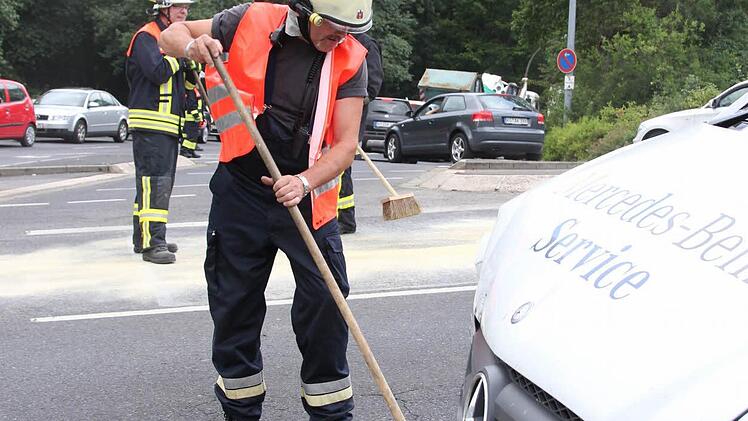 Der Notruf ging um 12.38 Uhr bei der Bad Kissinger Feuerwehr ein, sagt Stadtbrandinspektor Harald Albert. Während der Aufräumarbeiten wurde der Verkehr von Polizei und Feuerwehr über den Bahnhof umgeleitet. Die Höhe des Schadens ist bisher noch nicht bekannt.
