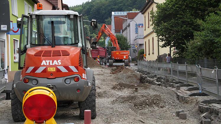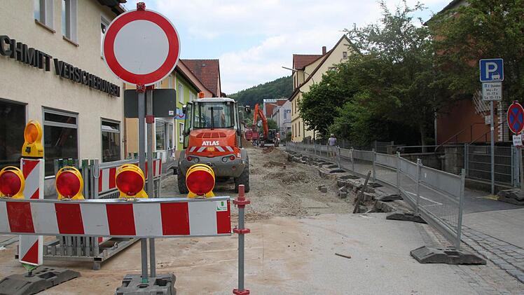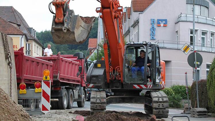 Der Fußweg auf der Seite des Reisebüros bleibt aber noch begehbar. Die Arbeiten am zweiten Bauabschnitt beginnen ebenfalls nächste Woche. Auch zwischen Brunnengasse und Sinnaustraße werden Kanal- und Wasserleitungen verlegt. "Die Umleitung führt durch Hof- und Judengasse oder über den Alten Schlachthofweg", sagt Weismantel. Die Kunden der VR-Bank werden auf andere Parkplätze ausweichen müssen.