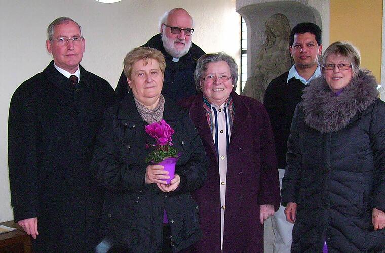 Der Diakon freute sich auch, dass die Lauterer Senioren auch in Zukunft ihre Treffen haben, gestaltet von einem Team aus vier Frauen. Herzlich gratulierten und bedankten sich auch Pfarrer Stephan Hartmann und Pfarrvikar Pater Silvester. Vom katholischen Dekanatsseniorenforum waren die bisherige Vorsitzende Leopoldine Wiesner und ihre Nachfolgerin Alrun Lintner gekommen und schlossen sich dem Dank an.