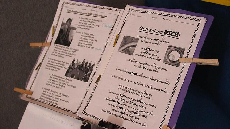 "Du hinterlässt eine gute, gesunde Schule." Für Klaus Lotter standen immer die Schüler im Vordergrund und die verabschiedeten sich mit: "Ob Bienenstaat, ob Obstsalat, die Zeit wird ihm nicht lang. Und wenn ihm gar nichts mehr einfällt, hat er noch den Stadtrat."