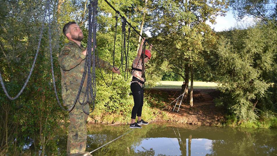 Welches Wissen und Können in Hammelburg vermittelt wird, das konnten die Besucher beim Familientag am Nachmittag ein Stück weit erleben. So gab es ein kleines Biwak im Kurpark, in dem die Soldaten das Leben im Felde vorstellten.