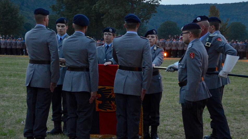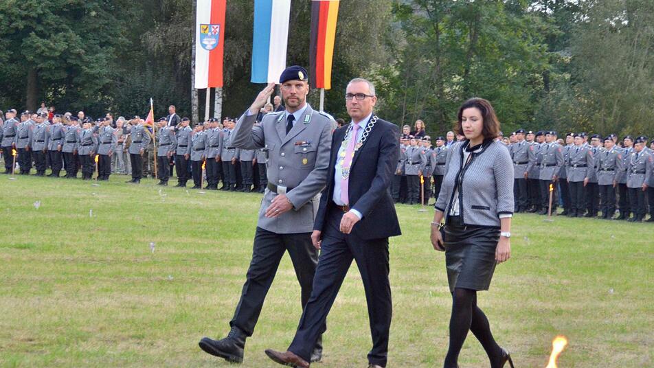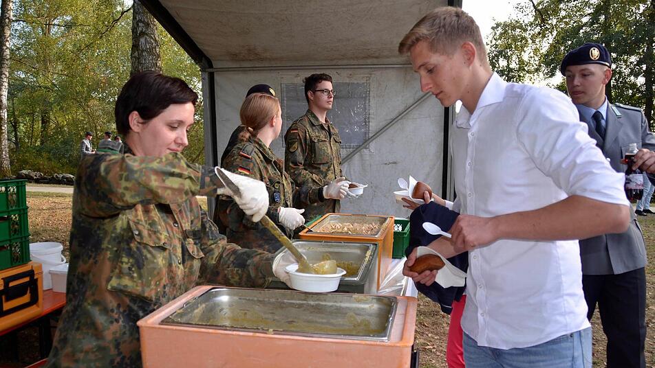 2. Bürgermeister Andreas Sandwall zollte in seiner Ansprache den angehenden Offizieren seinen Respekt. Als Abenteuer bezeichnete Kadett Maurice Thomas in seiner Rede die bereits absolvierten ersten Monate der Offiziersausbildung in Hammelburg. Man habe eine völlig andere Welt betreten, sich in Verzicht geübt, neue Erfahrungen gesammelt, gelernt, immer in der Gruppe und mit Menschen unterwegs zu sein. "Die Kameradschaft ist das Wertvollste, was uns von der Bundeswehr gegeben wurde", fasste er seine Eindrücke zusammen.