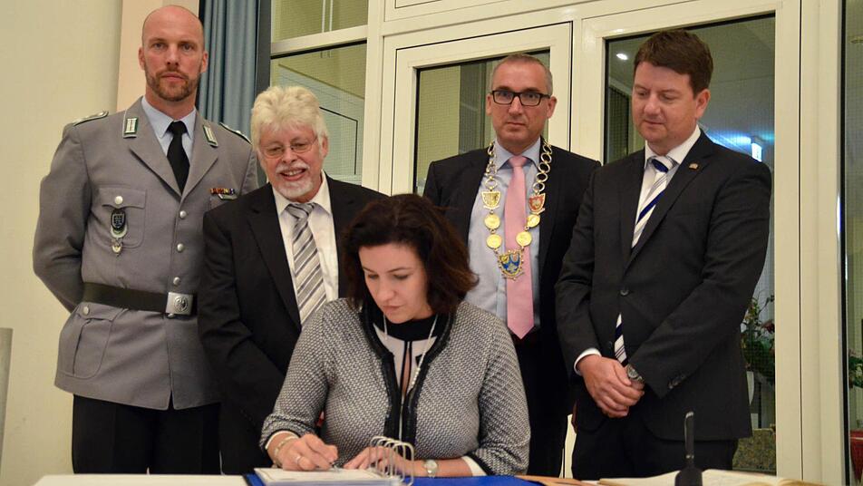 Festrednerin ist Dorothee Bär (CSU), Bundestagsabgeordnete und parlamentarische Staatssekretärin beim Bundesminister für Verkehr und digitale Infrastruktur. Eigentlich habe sie jetzt Sitzungswoche in Berlin, da wollte sie, so ihr Vorsatz, immer in der Hauptstadt sein. Jedoch habe sie nun mit diesem gebrochen, da sie es als große Ehre empfinde, Festrednerin der feierlichen Vereidigung zu sein. "Sie haben sich in einer Zeit entschieden, in der die Krisen der Welt an Deutschland herangerückt sind", sagte sie.