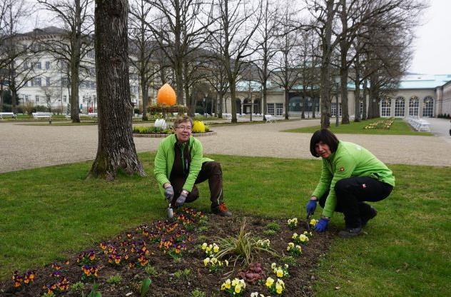 Im nächsten Schritt werden die Wechselpflanzungsbeete im Rosengarten entlang der Saale mit Blumen wie Vergissmeinnicht und Hornveilchen versehen. Im Anschluss daran werden die Anlagen in Bad Bocklet bepflanzt. Die Arbeiten sind witterungsabhängig und dauern voraussichtlich bis Mitte der kommenden Woche an. Die Fachkräfte der Abteilung Kurgärtnerei verbreiten mit duftenden Blumengestecken und stilvoll gestalteten Deko-Elementen in den Kuranlagen Ostergefühle.